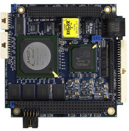 PC/104-Plus Single Board Computer with low power AMD GX 500 processor, 256 MB soldered-on DDR RAM, 4 USB 2.0 ports, and high performance video. |